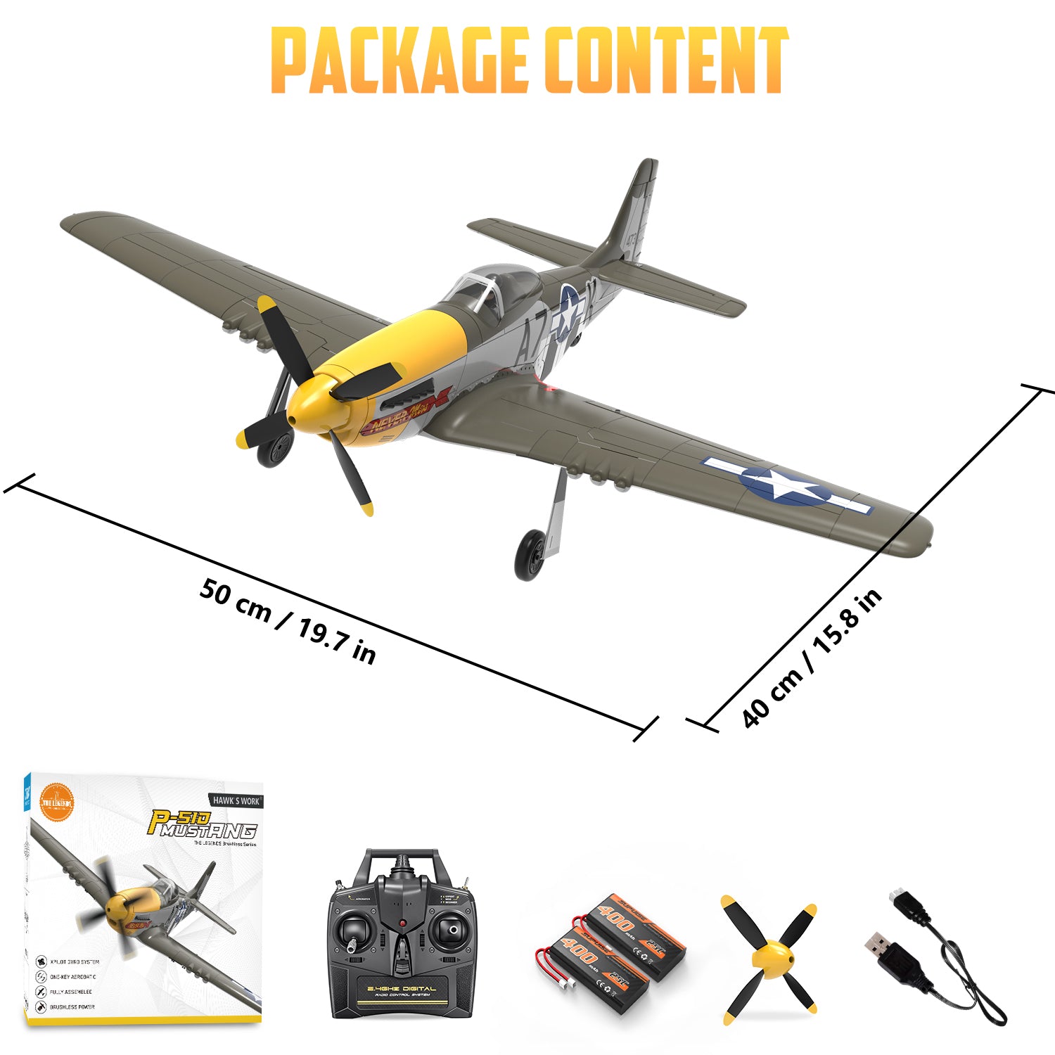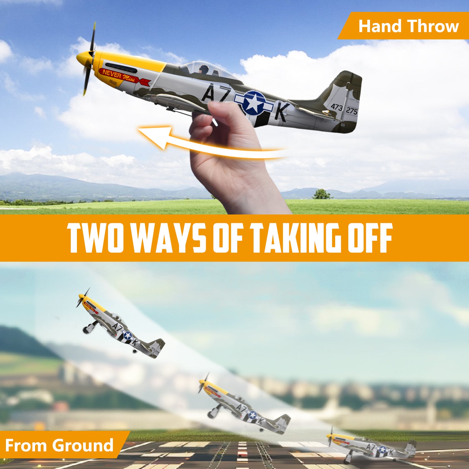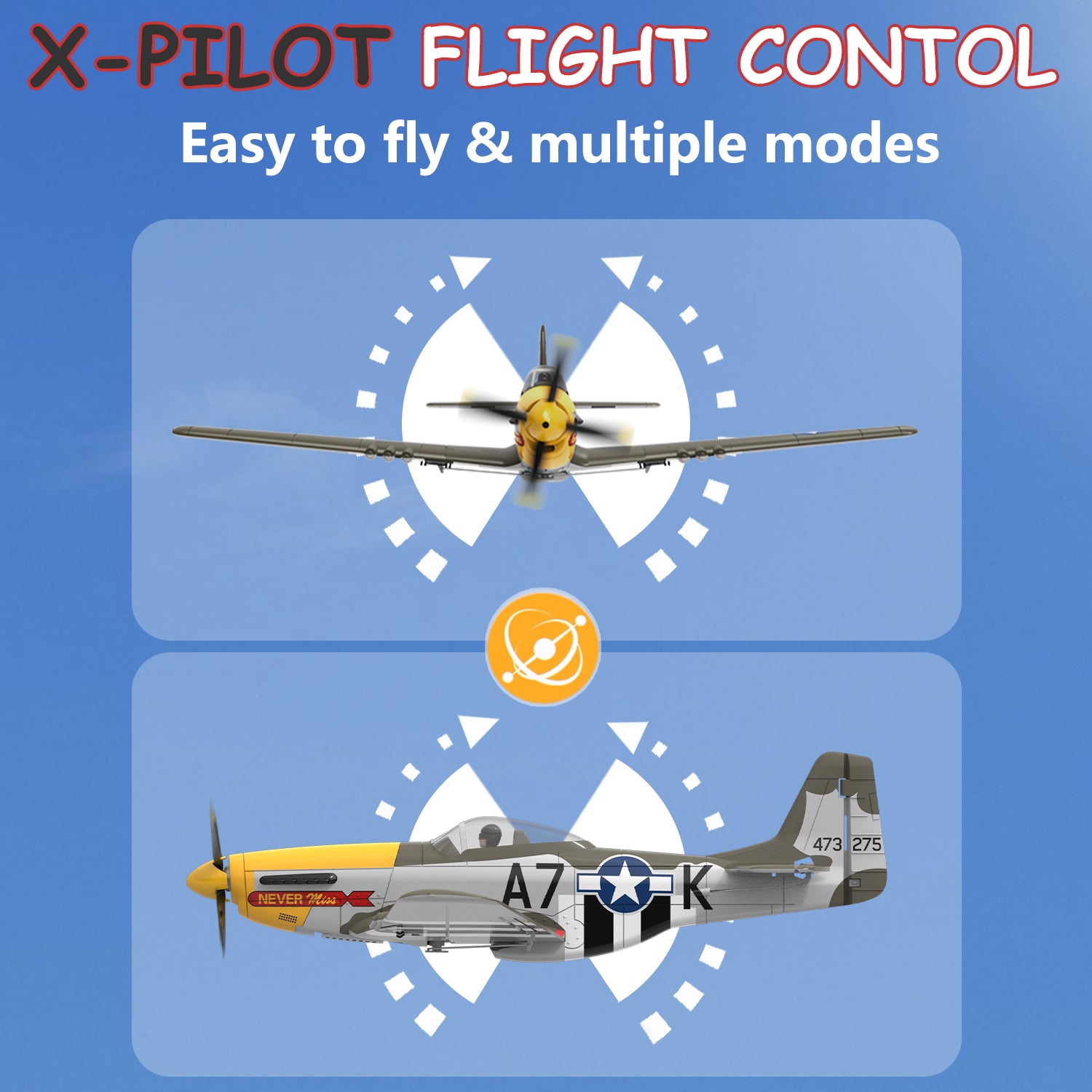 - ๐๐ซ๐๐๐ญ ๐๐จ๐ซ ๐๐ฎ๐ญ๐๐จ๐จ๐ซ ๐๐๐ฏ๐๐ง๐ญ๐ฎ๐ซ๐๐ฌ - It has a 50cm wingspan and a beautifully modeled P-51 Mustang. With the help of the X-pilot gyroscopic stabilization system, it is capable of both smooth and aerobatic flight.