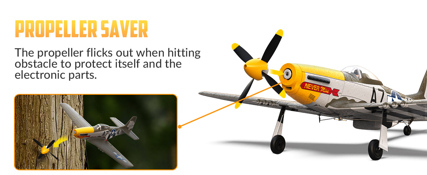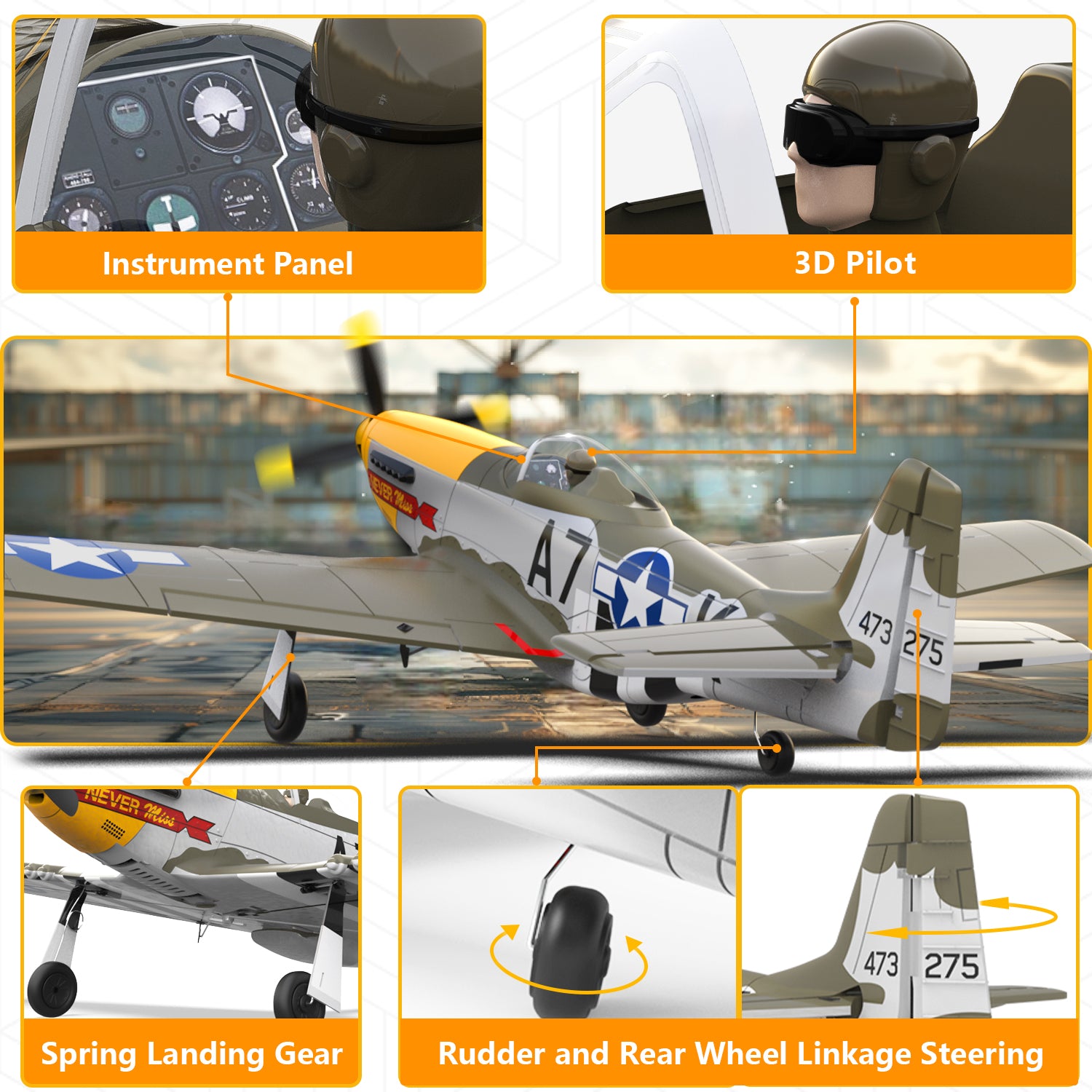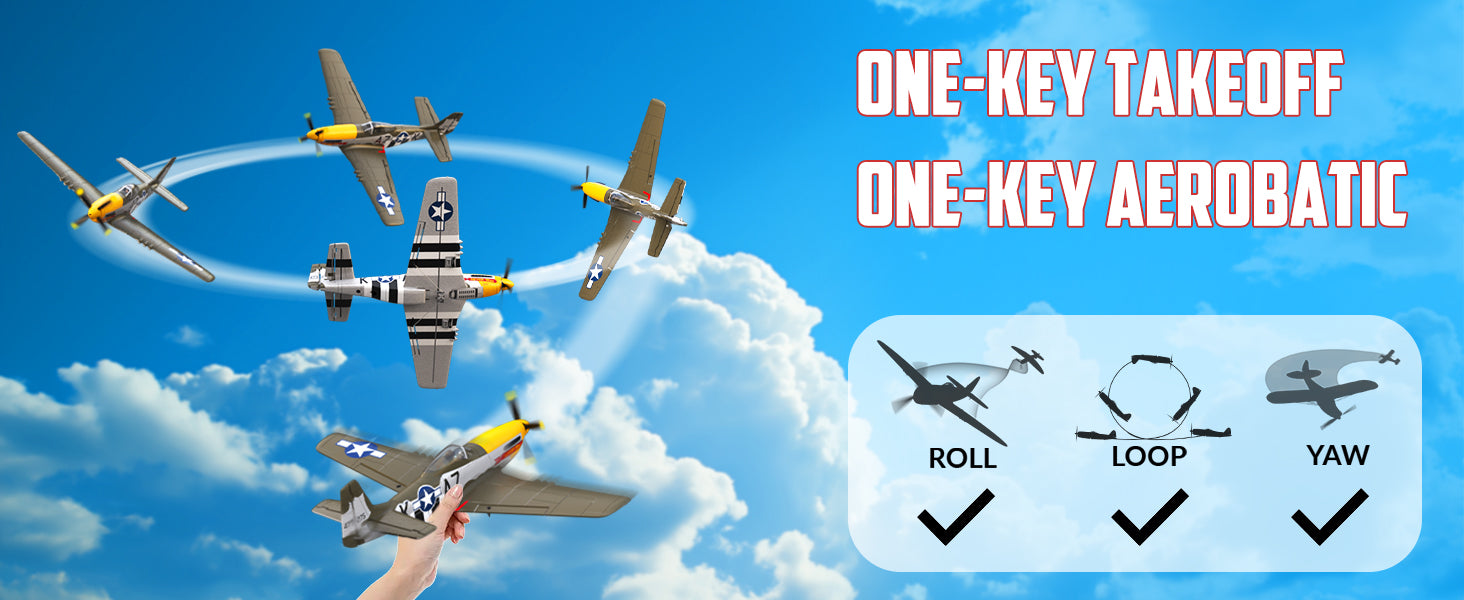 - ๐๐ซ๐๐๐ญ ๐๐จ๐ซ ๐๐ฎ๐ญ๐๐จ๐จ๐ซ ๐๐๐ฏ๐๐ง๐ญ๐ฎ๐ซ๐๐ฌ - It has a 50cm wingspan and a beautifully modeled P-51 Mustang. With the help of the X-pilot gyroscopic stabilization system, it is capable of both smooth and aerobatic flight.