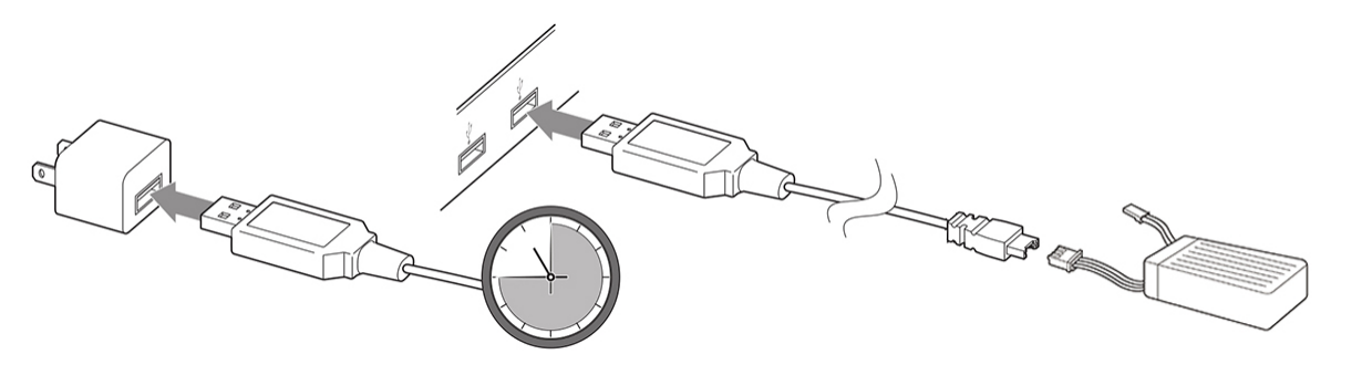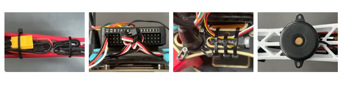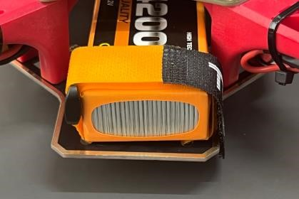 Use a double-sided tape with Velcro to secure the battery on the bottom board. Then tighten the battery with hook & loop tie.