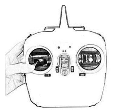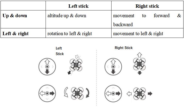 Arm the drone: hold the left joystick at the lowest right corner for about 3 seconds and the motors start to rotate.