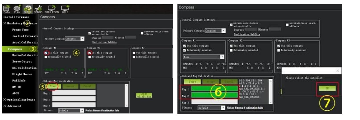 Note: There are instructions of each step in Mission Planner, and please refer to videos if you need detailed operating guide.