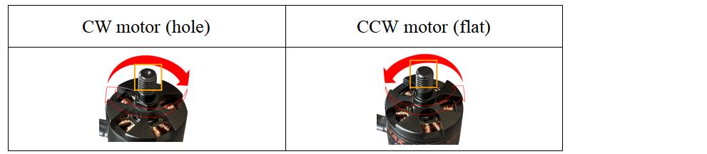 - CCW motors are used in positions of①and ②, CW motors in③ and ④.