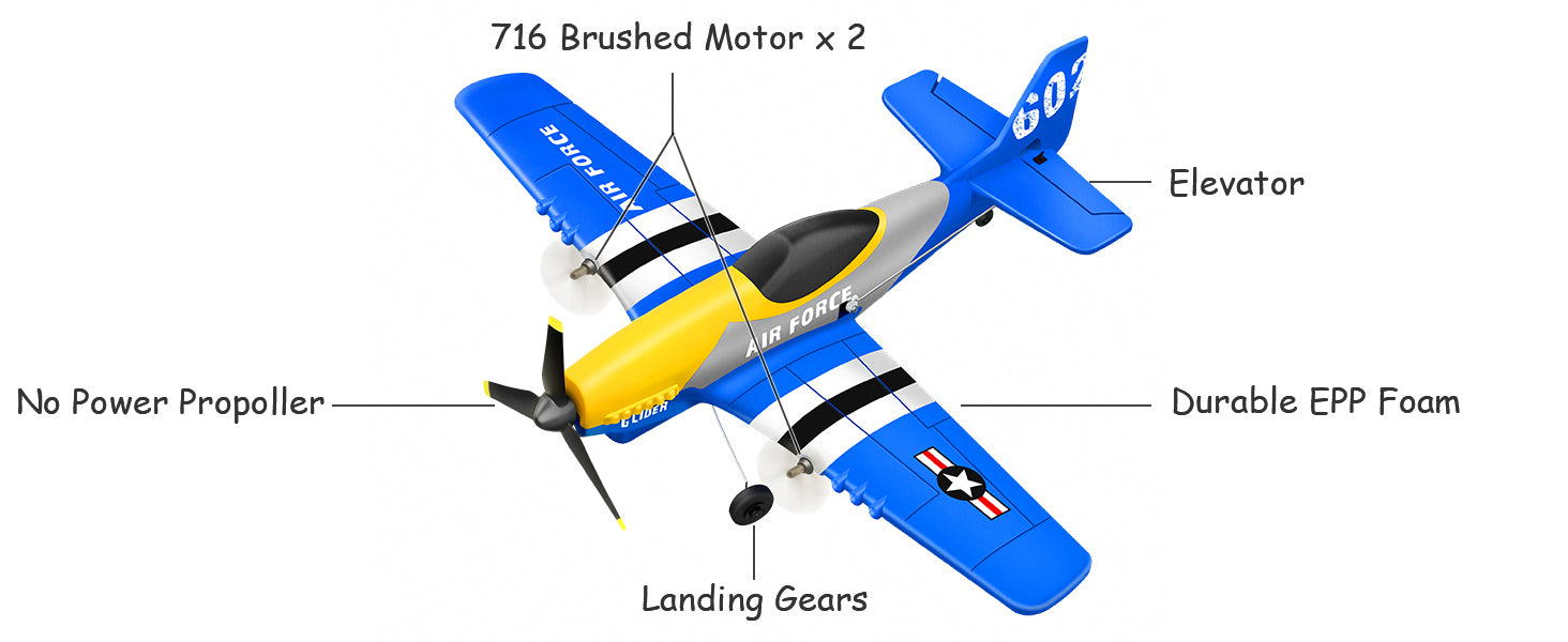- ๐๐ญ๐ซ๐จ๐ง๐ ๐๐จ๐ญ๐จ๐ซ๐ฌ & ๐ ๐๐๐ญ๐ญ๐๐ซ๐ข๐๐ฌ - The airplane is equipped with 2 powerful brushed motors and pilots can switch high and low speeds. It come with 2 rechargeable batteries, providing about 40 minutes of flight fun (20 min *2).