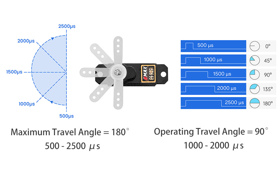 - Good Performance - Running speed (4.8V): 0.09±0.01 sec/60°, Torque (4.8V): 0.8kgf·cm, Running angle: 180 degrees