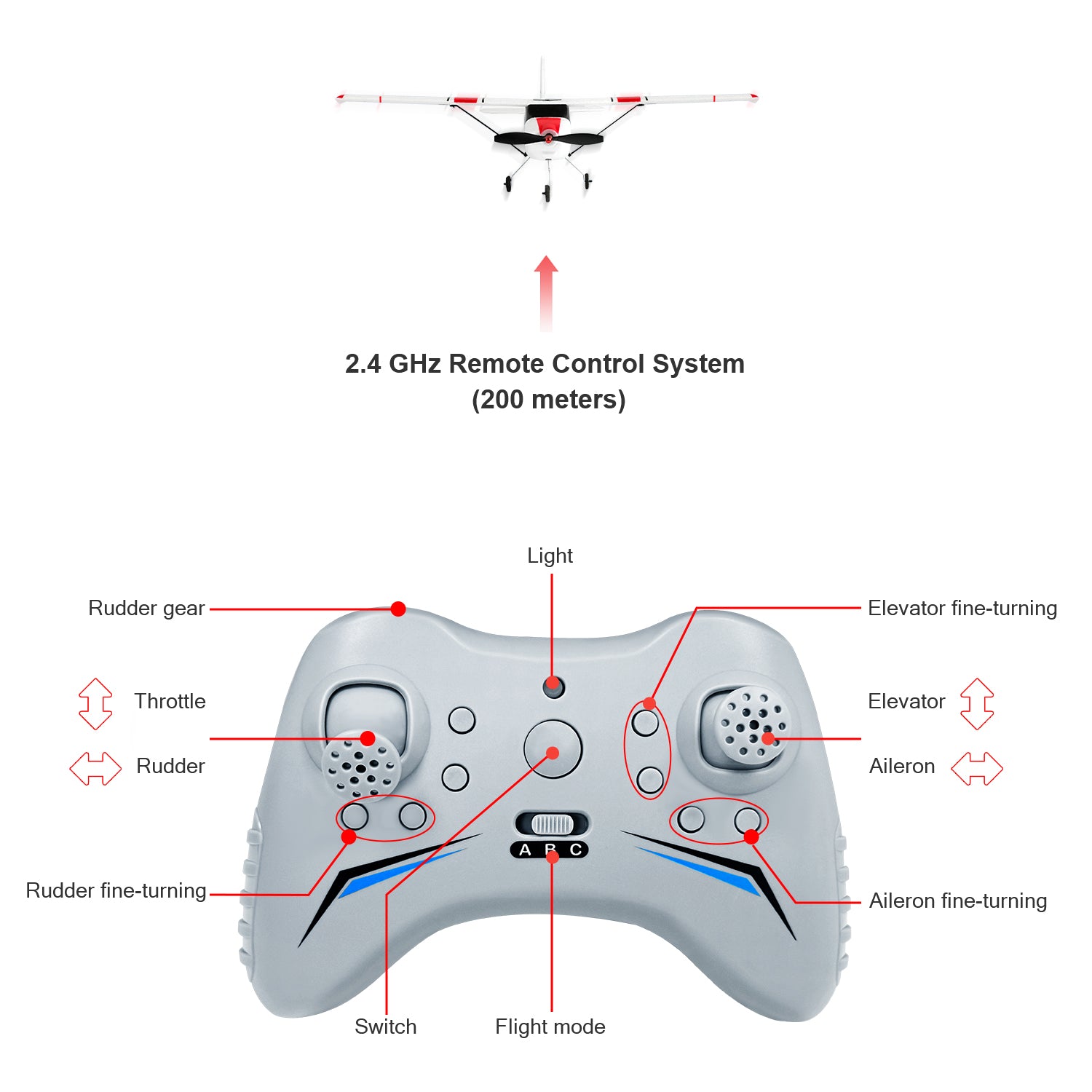 - ๐๐๐ฆ๐จ๐ญ๐ ๐๐ข๐ฌ๐ญ๐๐ง๐๐ โฅ ๐๐๐๐ฆ - This 2.4 GHz Radio control system can reach a remote control distance of 200m. And 2 or more planes can fly together without mutual confusion.