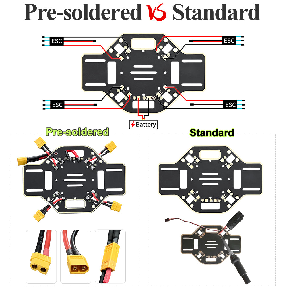 - 𝟐 𝐂𝐡𝐨𝐢𝐜𝐞𝐬 - We offer 2 versions for users to choose from: Standard and Pre-soldered. If you don't want to solder it yourself, go straight to the pre-soldered option, you just plug in the XT60 ESC to connect it.