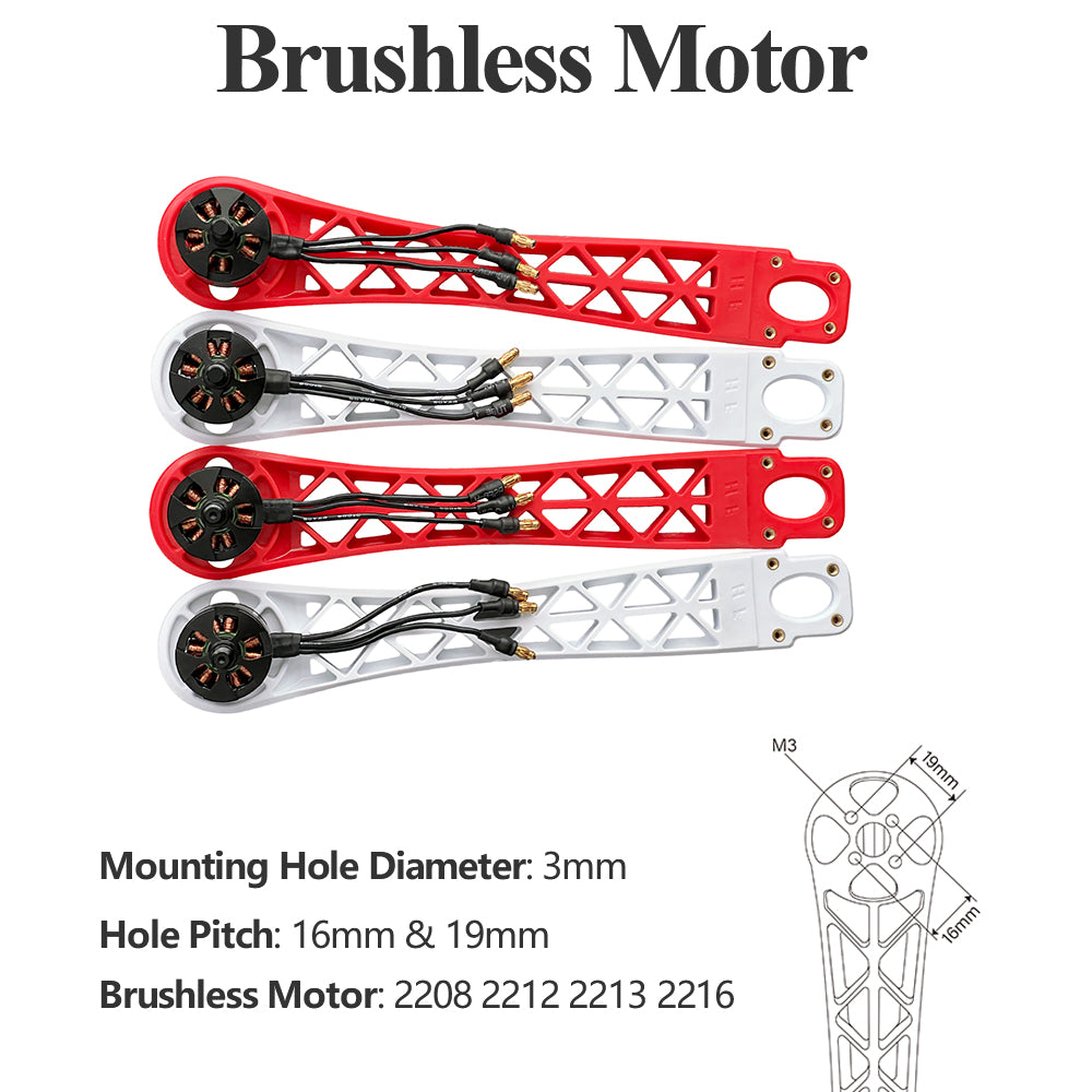 Packing list: Arm * 4 (red*2, white*2), plate * 2 (top plate *1, bottom plate*1), landing skid * 4, M3 + M2.5 screws, instruction in English