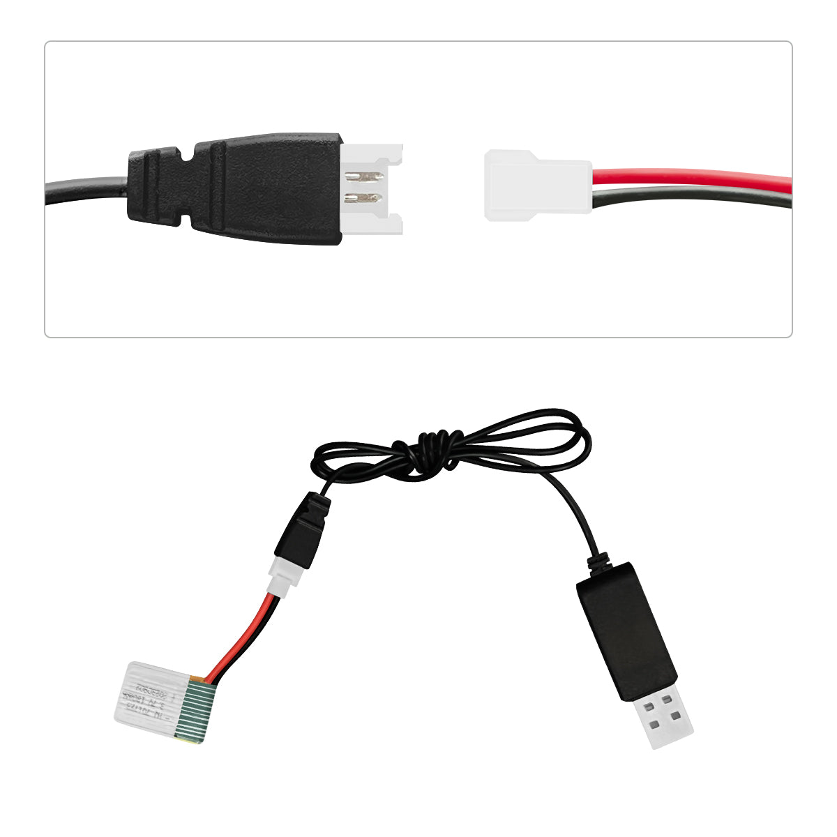 - 【USB charging cable】You can use it by plug into a mobile phone charger, a computer USB port or a power bank. Input: DC 5V 0.5-2A; Output: DC 3.7V 500 mA; Plug: USB + XH 2.54